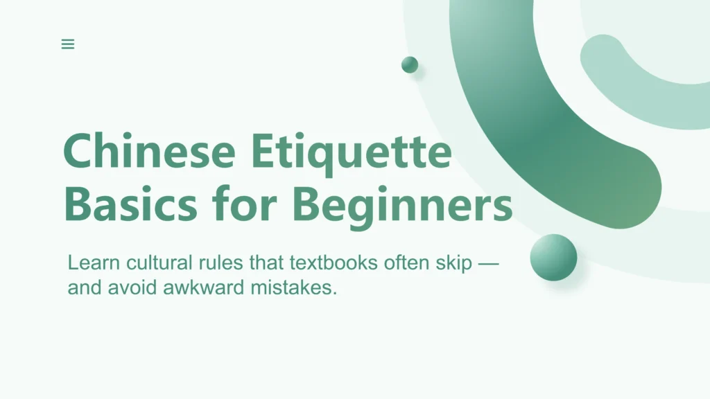 Learn Chinese etiquette basics for beginners: festivals, gift-giving, public behavior, numbers, and daily conversation. Master cultural norms to communicate naturally and avoid common mistakes.
